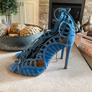 Aquazzura Blue Suede Heels sz 37 US 7
