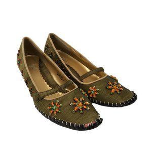 Pointed toe Mary Jane kitten heels by J. Jill. Size 7. Jewels/beads along sides and top of shoes. Heels are approximately 1.5" high. Excellent pre-owned condition; no flaws. No wear on soles.