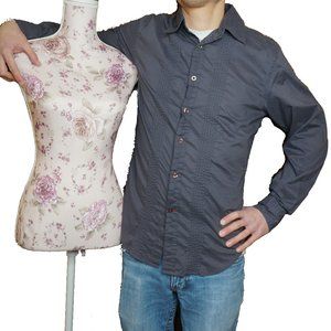GUESS JEANS Button Down Ruffle Tuxedo Shirt Grey