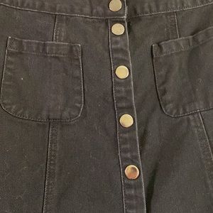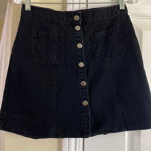 Excellent condition. Like new, worn once black denim button up skirt. Cute for a night out, school etc.,. Or summer wear if it’s not too hot.