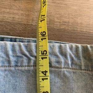 Light wash denim with slight pleated flare. Lace up with zip back close. Size 8