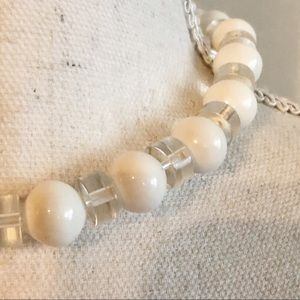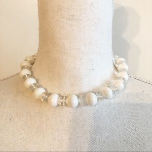TRIFARI White and Clear Beaded Adjustable Choker Necklace.