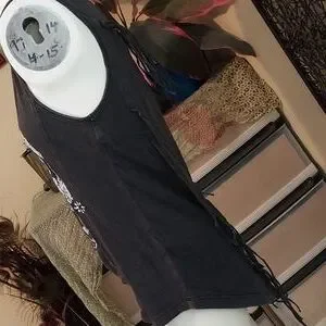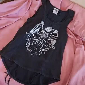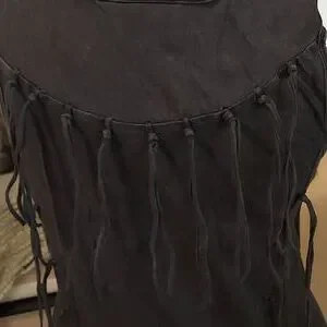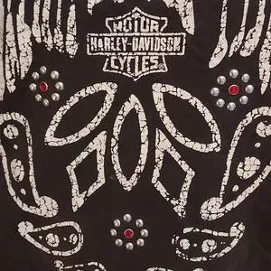 This is so cute on! It's a little longer in the back with fringe across the top and down the sides. The front has the Harley logo, the eagle, and 3 red stones surrounded by silver studs. No flaws! Please ask questions! All items come from cat friendly home!