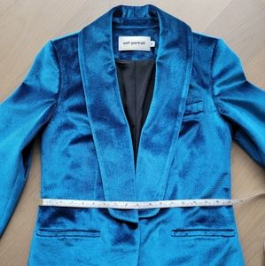 Self-portrait peacock blue velvet blazer
