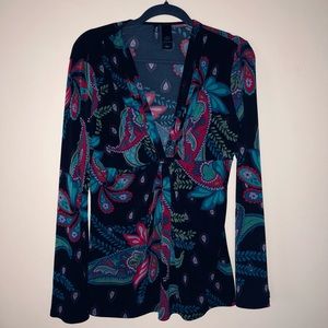 BISOU BISOU colorful lightweight V neck top large