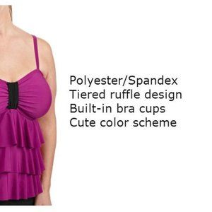 1X CATALINA Tankini Swim Top Waterfall Tiered Ruffle PLUS Magenta w Black 16W. NEW with tag; in sealed plastic bag from manufacturer. Catalina tankini top with tiered ruffles No underwire.Pair with bikini bottoms or a swim skirt.