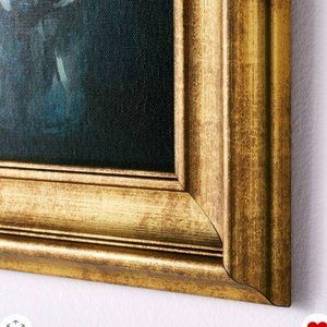 NWT Studio McGee Art Print Gold Framed Navy Blue White Floral Wall Canvas