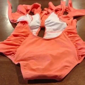 Peddney one piece coral size Small ruffled swimsuit. NWOT Size S ADORABLE