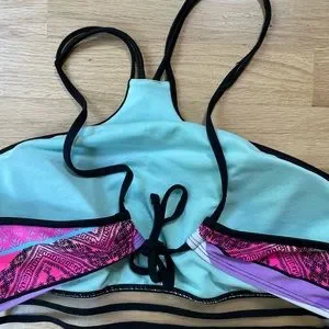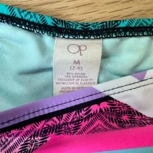 OP 2 Piece Colorful Swim Suit (Bottoms Size Medium, Top Size XL)