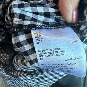 Bar III black and white gingham smocked blouse|off the shoulder