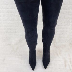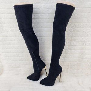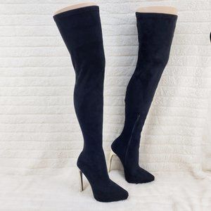 Girlz Revenge Faux Stretch Suede Black Sexy High Heel Pointy Toe Platform Boots