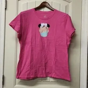 Hanes bright pink hand sewn Mackey mouse cupcake accent size XL