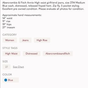 Abercrombie & Fitch Annie High Rise Jeans SZ 27