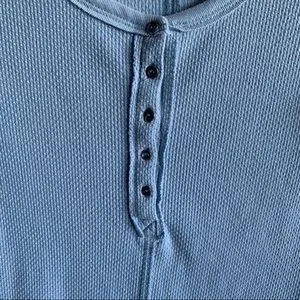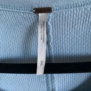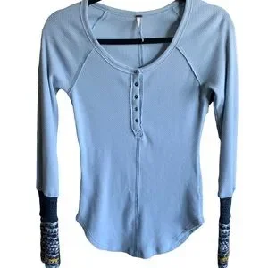 FREE PEOPLE Thermal Henley Crochet Cuff Trim Long Sleeves Top • Sky Blue • Small Petite