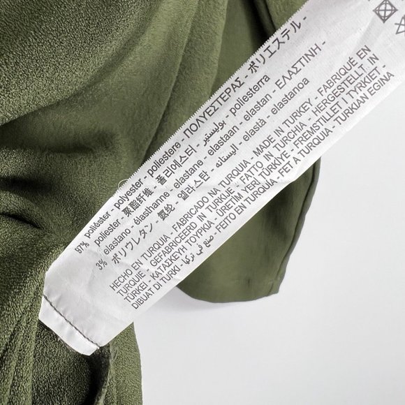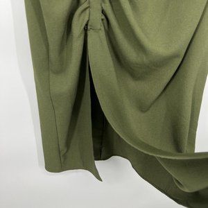 Zara Dress Green Button Front Crepe Long Sleeve Draped Midi