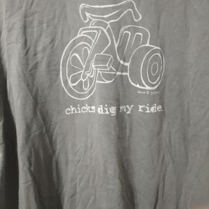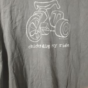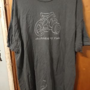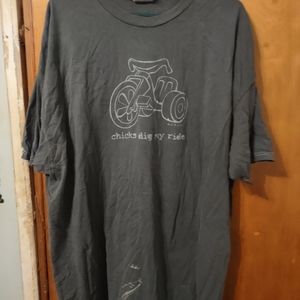 vintage mens gray short sleeve shirt in gray says chicks dig my ride