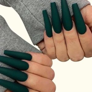 Beautiful Dark Green Long Tip PRESS ON NAILS