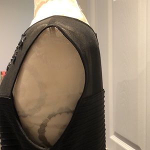 Beautiful sleeveless stretchy dress with ruching and an embellished mesh neckline for added sparkle and bling. Fully lined inside. Size 12 from Laura. In excellent used condition, worn once and still has lots of life left. Perfect for wedding season or a special event!