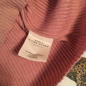 NWT Spell Margot knit mini dress in Rose. Unlined. Sparkly lurex woven in the material. Very comfy stretch for a bodycon fit. Measurements provided for size small. Gorgeous lacing up the back.