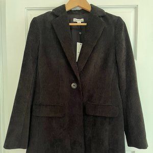 This blazer has been made in a rich black cotton-blend corduroy and has a nipped-in waist to accentuate your silhouette.