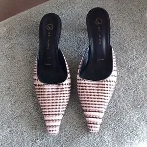 vintage St John Hills Pointe front open back still have lots of life white and black and brown size seven and a half see pictures