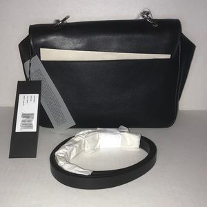 Halston Heritage Bag Black Leather Crossbody Chain Strap Leather Strap Bag NWT