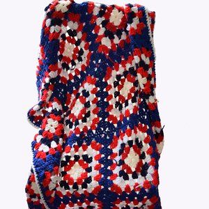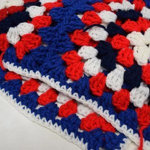 Patriotic Granny Squares Afghan Throw Lap Blanket Handmade Red White Blue Cottag