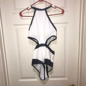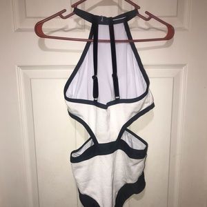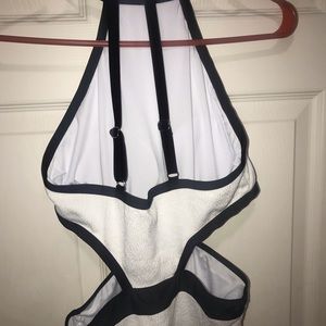Women’s black & white pre-loved one piece swim suit in a size small