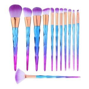 12 pc Rainbow Mermaid Diamond Point Make Up Brush Set