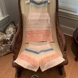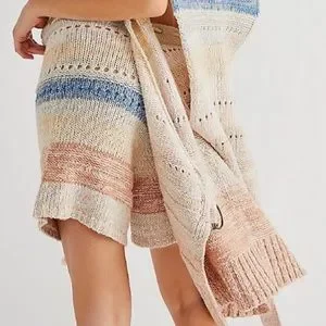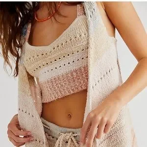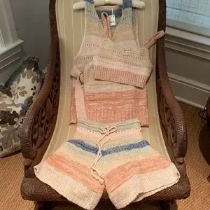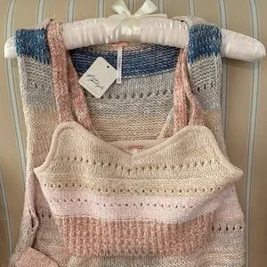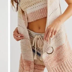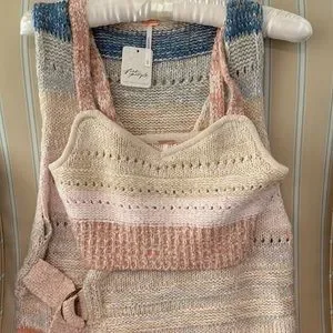 FREE PEOPLE SOUTHWEST SWEATER SET COTTON CROCHET KNIT IN SUNSET COMBO SIZE L