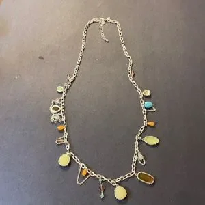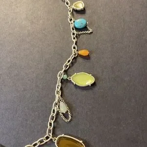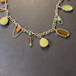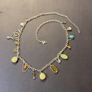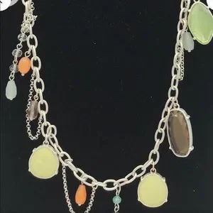Lia Sophia Multicolored Chain Style Necklace w Beads Silver Tone Charms Vintage