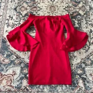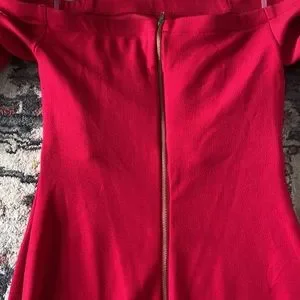 Absolutely gorgeous candy apple red off the shoulder dress, worn 1 time, size 3/4, unlined. Excellent condition