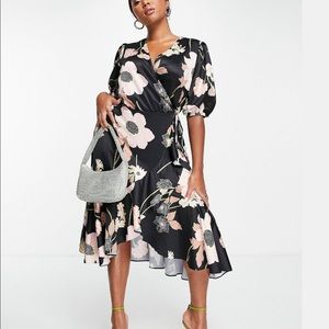 BRAND NEW WT curve midi satin wrap dress with puff sleeves in floral