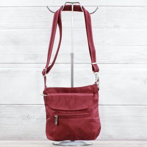 Travelon Maroon Polyester Vinyl RFID Shielded Pocket Crossbody Shoulder Bag
