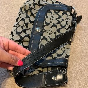 Coach Purse. Can be carried on shoulder. Black and gray. Purchased in 2011. Excellent used condition.