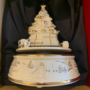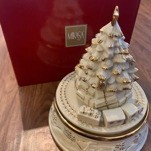 Mikasa christmas musical figurine. Train and tree rotates. Approximately 7.5” height and 6” in width. In original box. (A3)