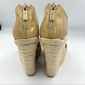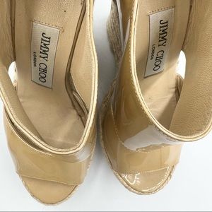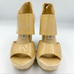Jimmy Choo Lagoon Nude Patent Leather Wide Ankle Strap Espadrilles US 5