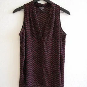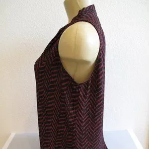 VINCE CAMUTO Black and Burgundy Chevron Top