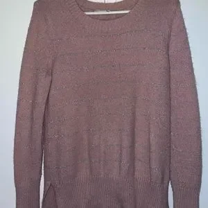 Size small pink with silver stripes Liz Claiborne sweater. Gently used and in great condition. Happy Shopping!