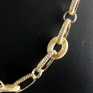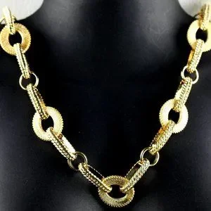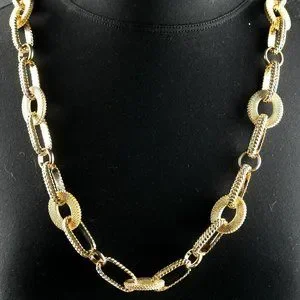 This amazing necklace by Kenneth Jay is chunky & heavy. The oblong links are 1 1/4" long; the oval links are 1" wide. It is signed KJL on the toggle clasp. It is in perfect condition & looks brand new. It is 33" long and weights about 8.5 oz.