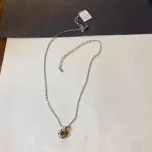 Lia Sophia Crystal Bouquet Silver Chain Green-ish Off White Crystals NWT 16”-19”