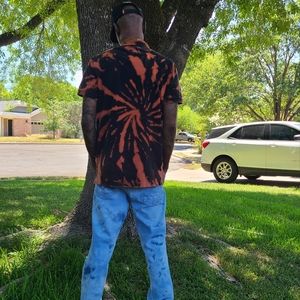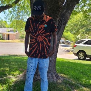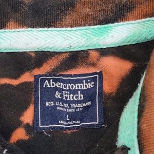 Abercrombie Custom polo shirt. Black and Orange pattern with Blue logo on the chest. Size L, in excellent used condition.