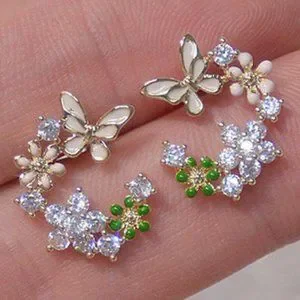 NEW 14K Gold Plated Diamond Flower Butterfly Stud Earrings