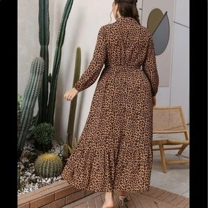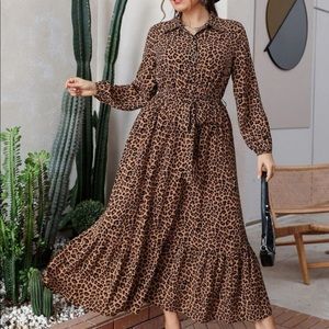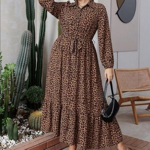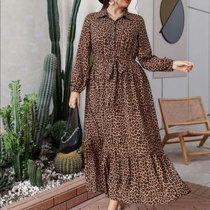 Boho Plus Size Leopard Animal Print Button Download Shirt belted Maxi Dress
