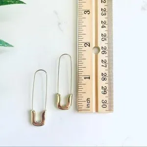 Gold Safety Pin Dangle Earrings Cute Fashion NEW Goth Punk Kawaii Unique 1.5”