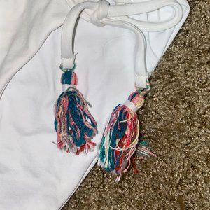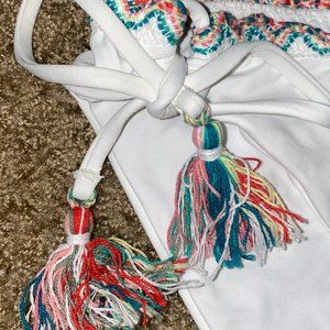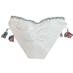 Bottoms: Tie on the side and added tassels for detail and Ruched Backside. Sit Low on hip and are full coverage