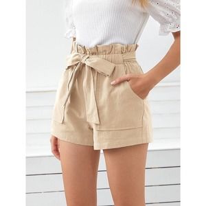 Boho Paperbag Belted Shorts high waist with pockets - olive green