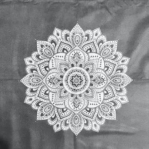 Black with a grey yoga-inspired mandala print.