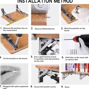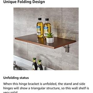Unique Design - When this hinge bracket is unfolded, the stand and side hinges will show a triangular structure, so this wall shelf is very solid. And you should just press the release arm to store it on the wall if you don't need to use this wall folding table. This flexible design will save you a lot of space.