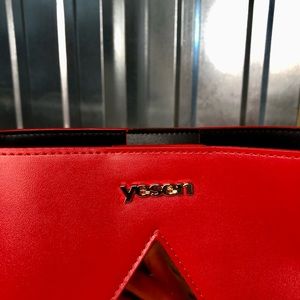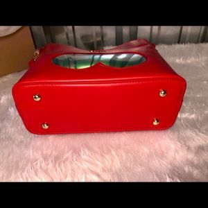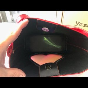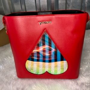 Heart Handbag Matching Coin Purse Leather NIB Set Red Black Gold White